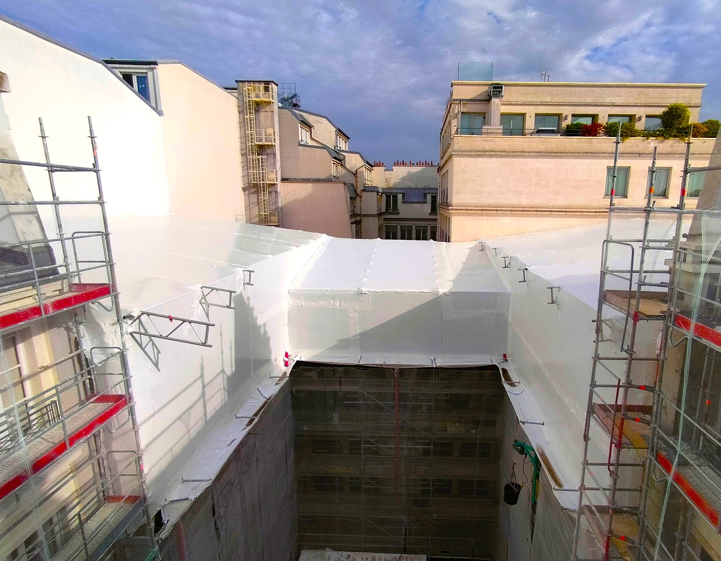 Le film thermo-rétractable est un système de protection provisoire qui constitue une isolation sur mesure, étanche et hermétique adaptée à vos travaux.