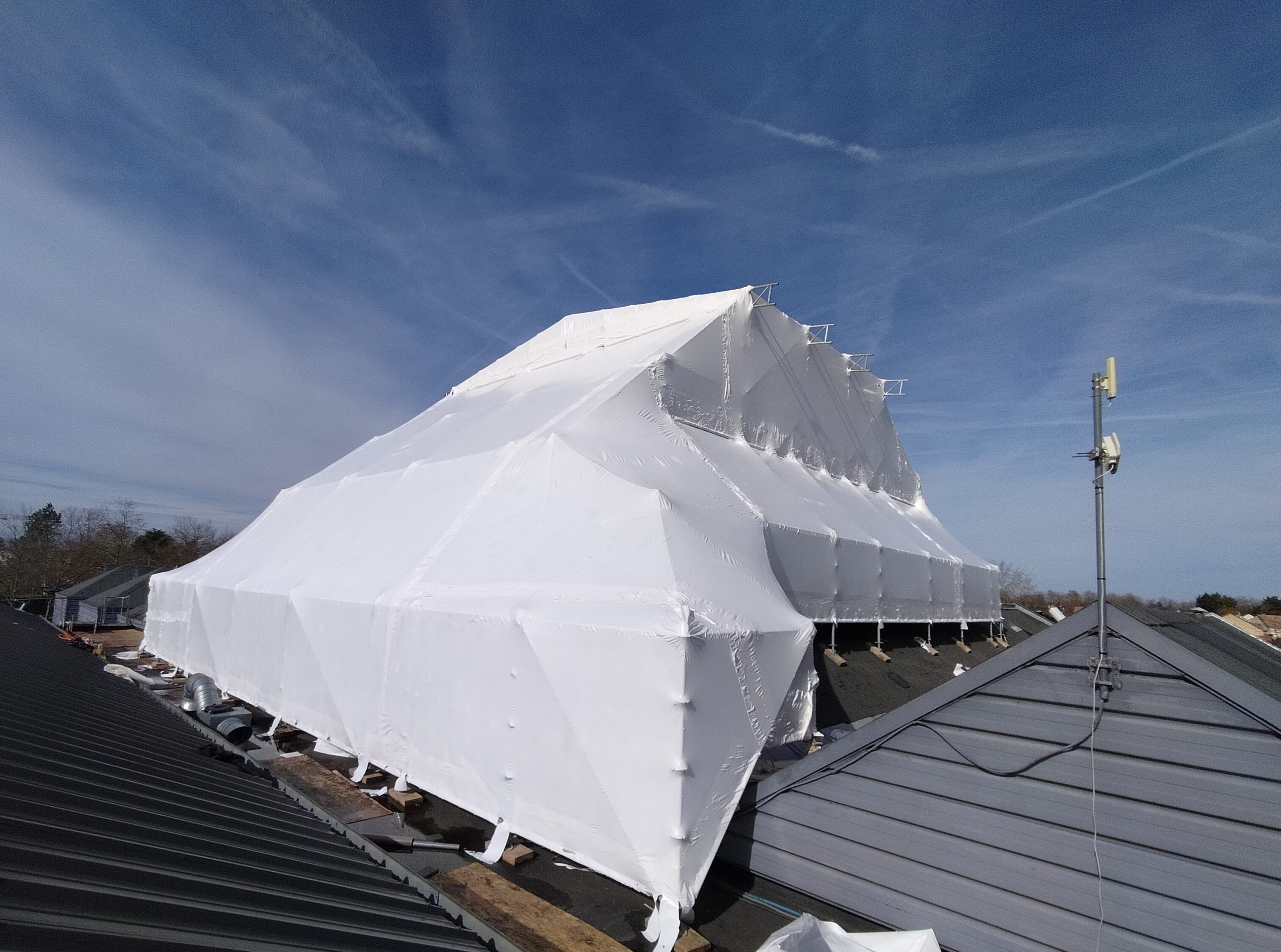 Crée en 2022 et située en région parisienne, nous proposons diverses solutions de bâchage par film thermo (M1, M0, anti-UV), bâche PVC, etc. Ces solutions s’adaptent parfaitement aux activités de nos clients.